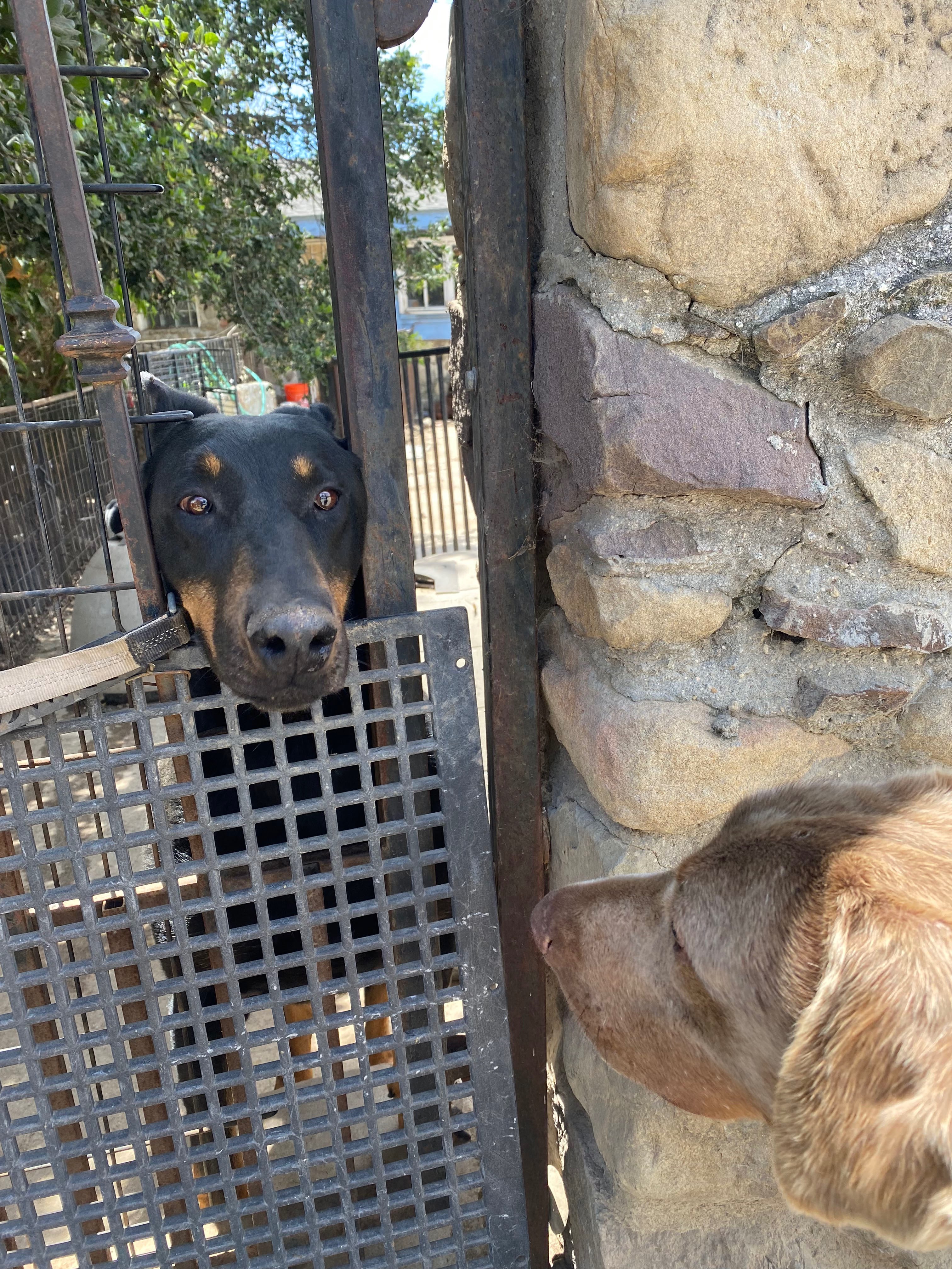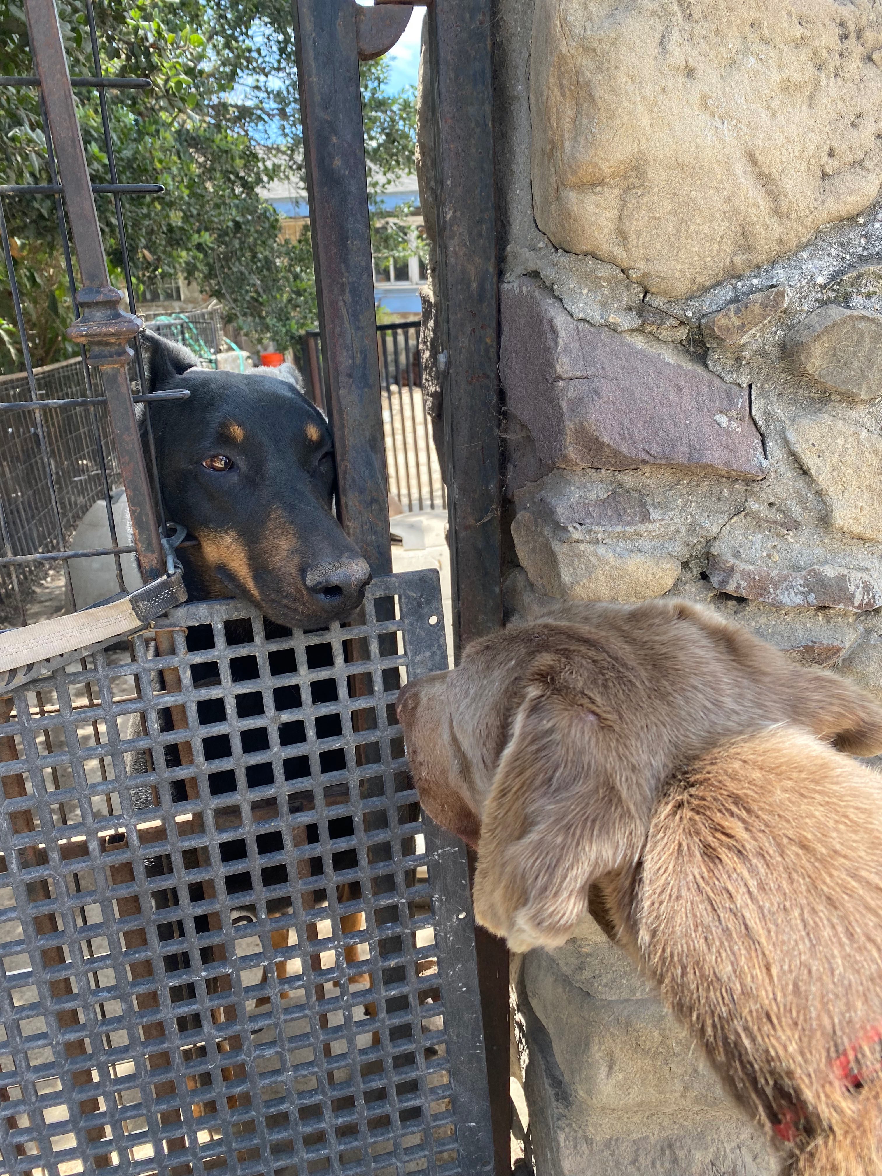 Taking two beautiful dobies for a walk at Dobies and Little Paws Rescue . Please visit the rescue to adopt, help with donations or take them for a walk.